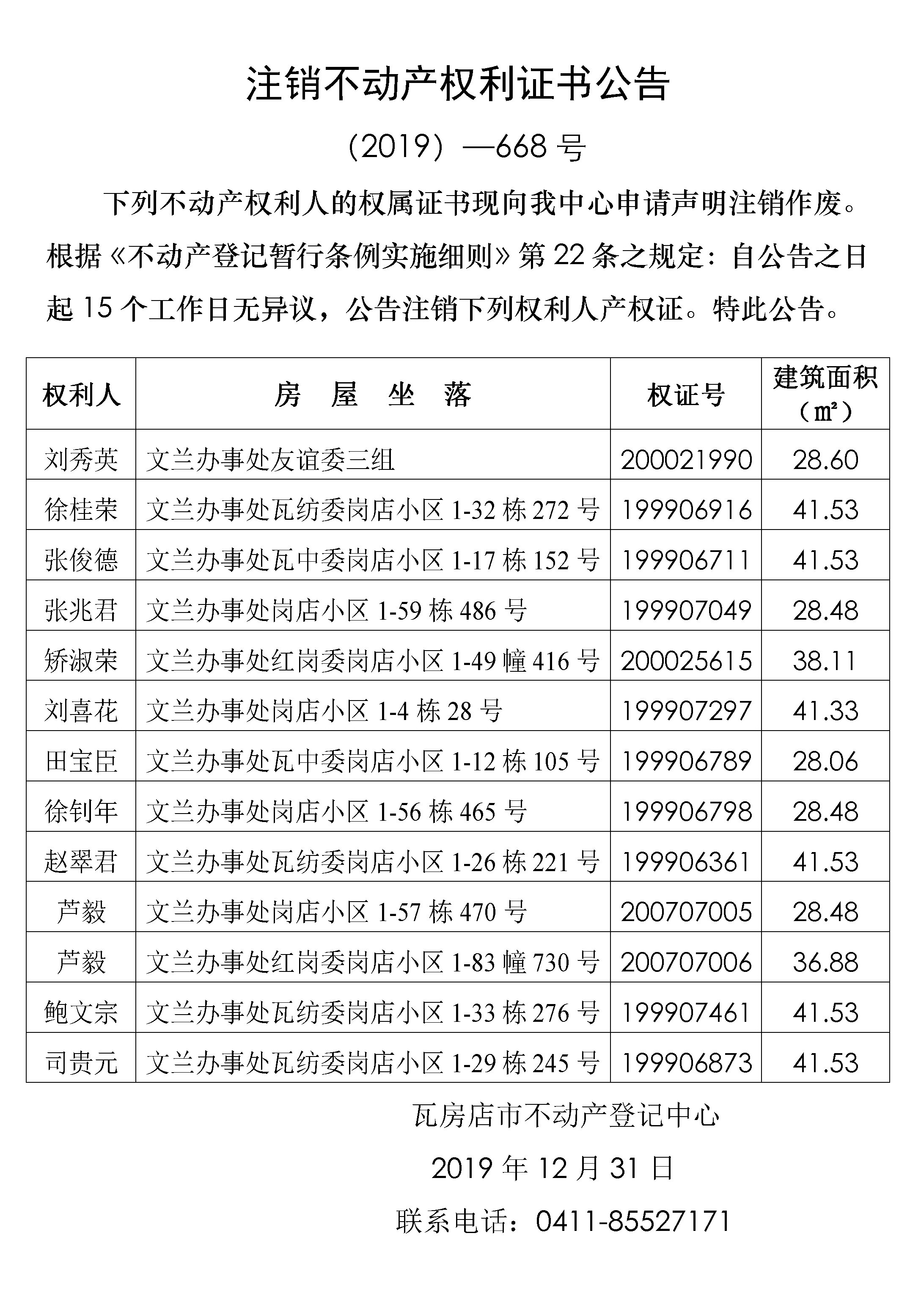 宅基地使用权及房屋所有权首次登记公告 (2019)-667号