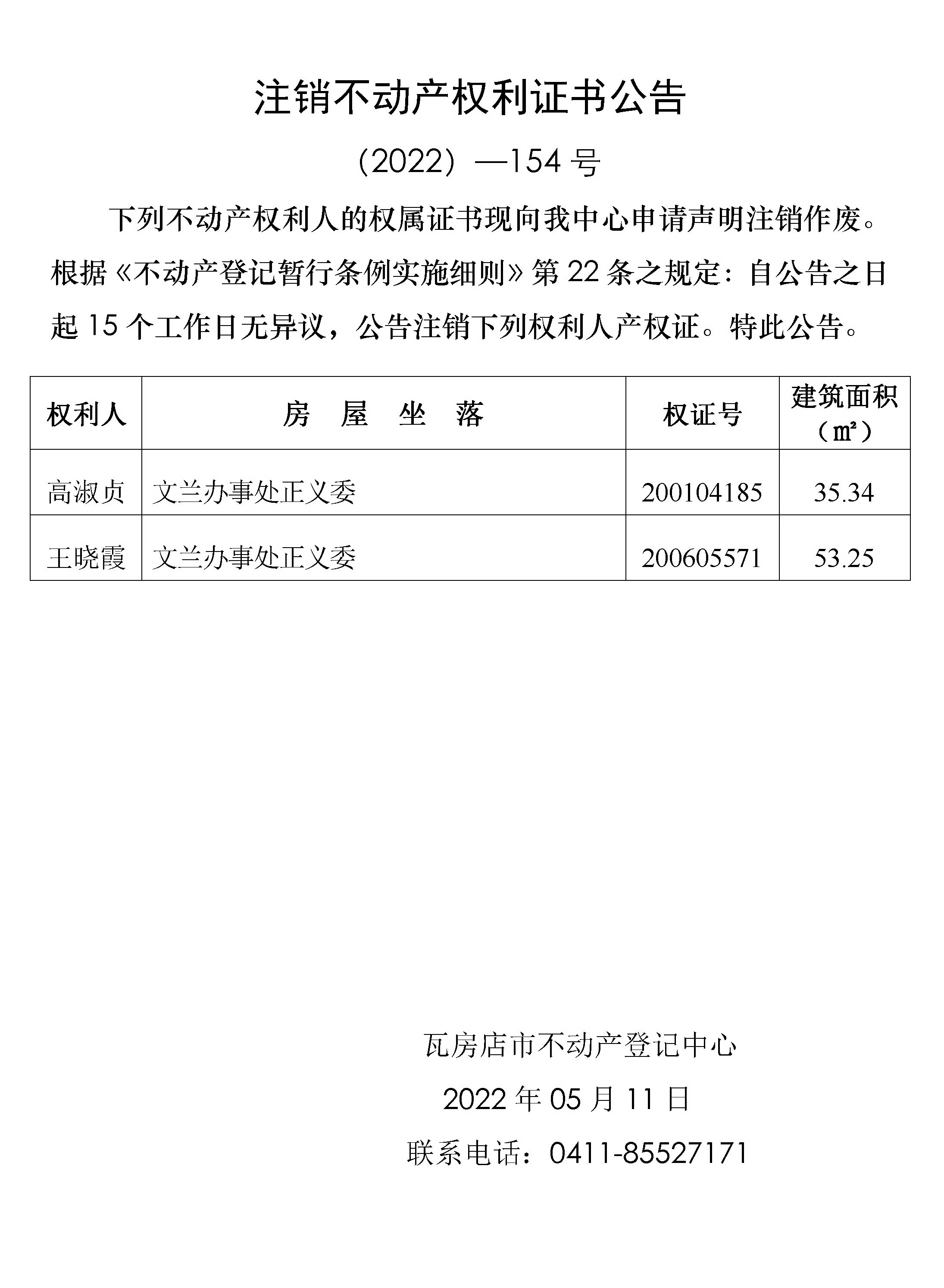宅基地使用权及房屋所有权首次登记公告 (2022)-155号