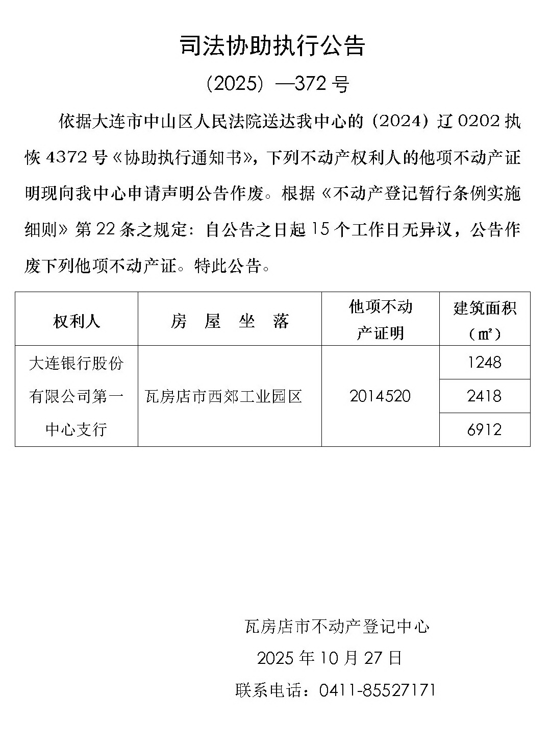 司法协助执行公告 (2025)-372号