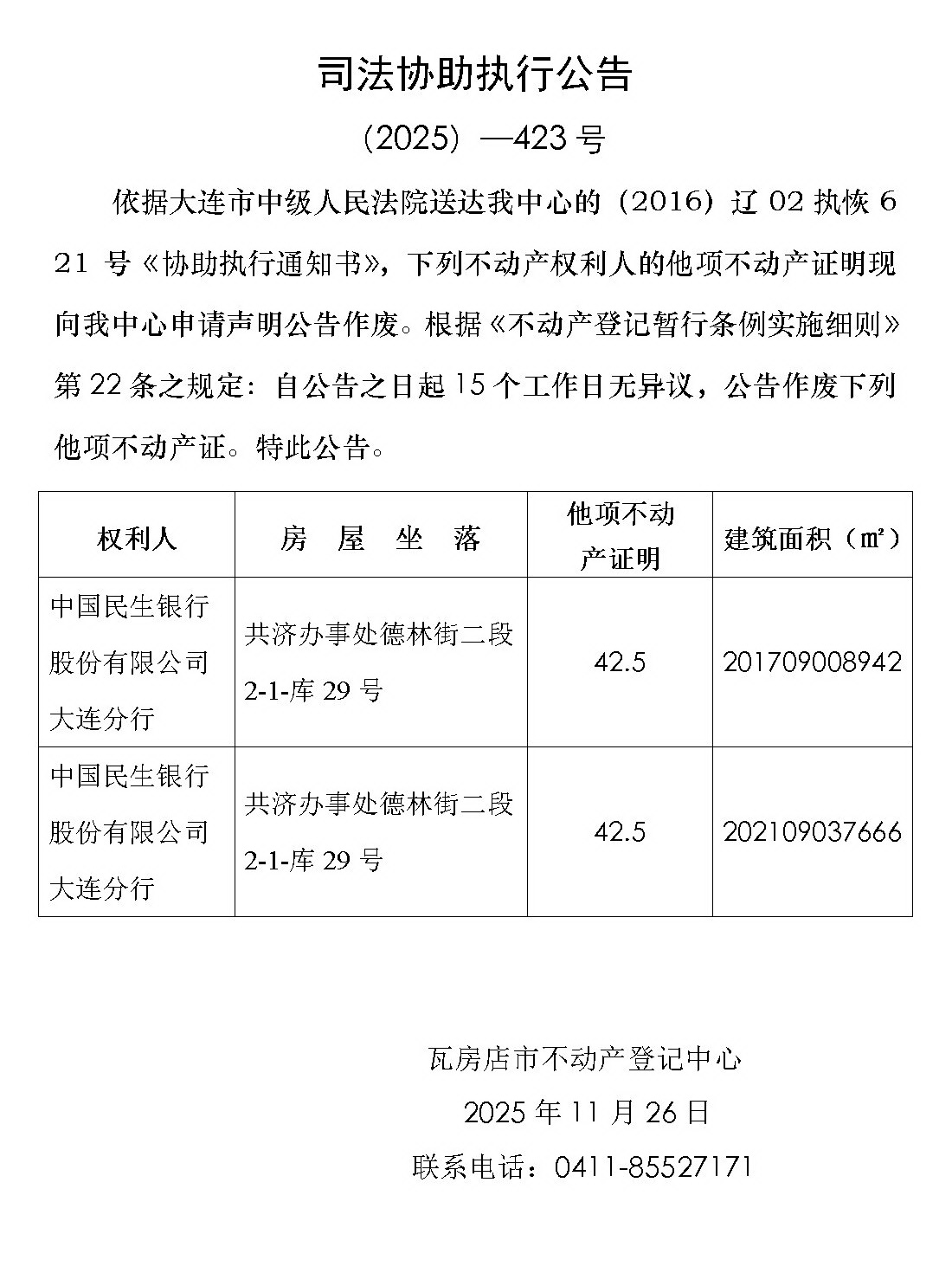 宅基地使用权及房屋所有权首次登记公告 (2025)-424号
