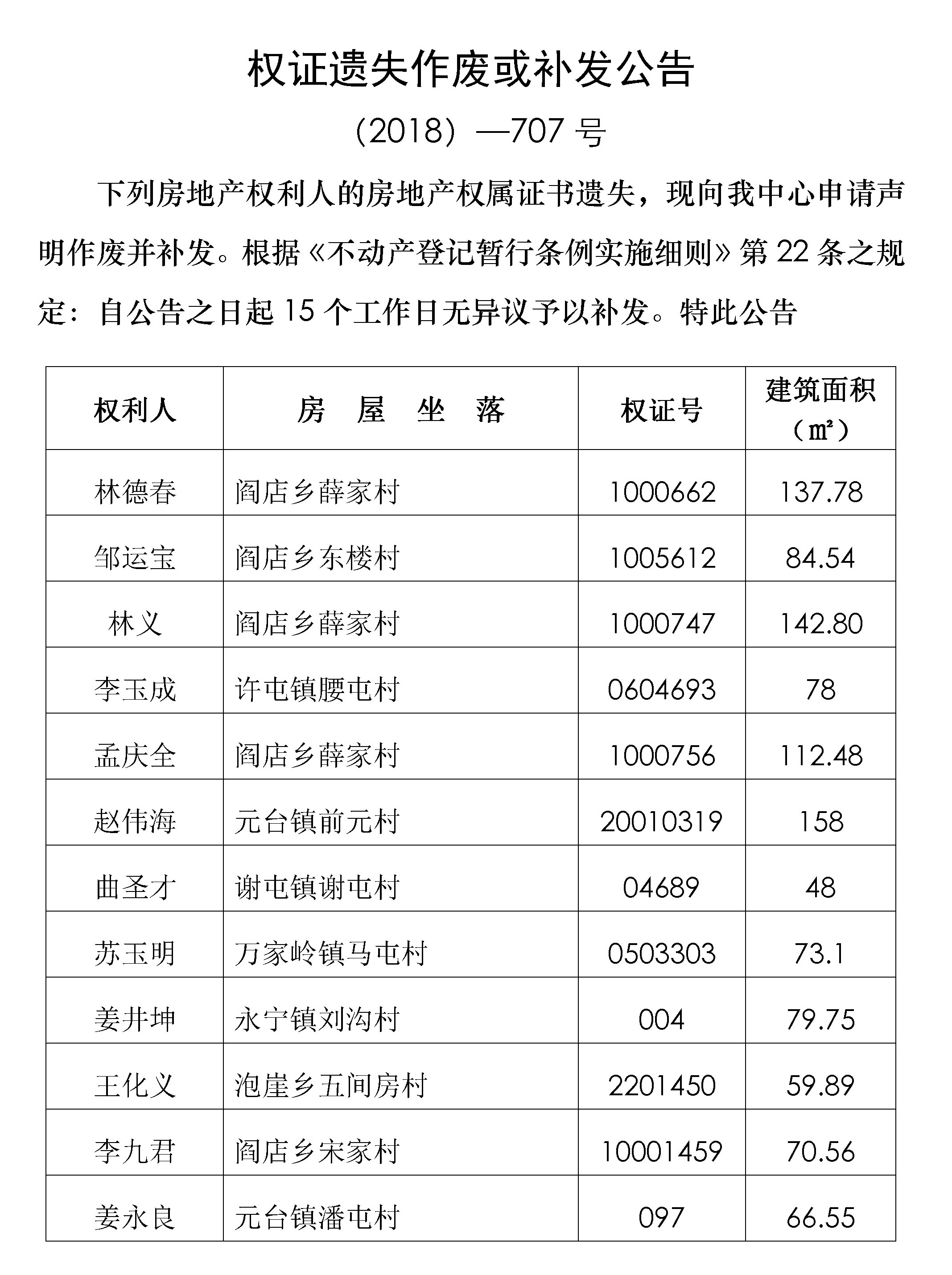 宅基地使用权及房屋所有权首次登记公告 (2018)-706号
