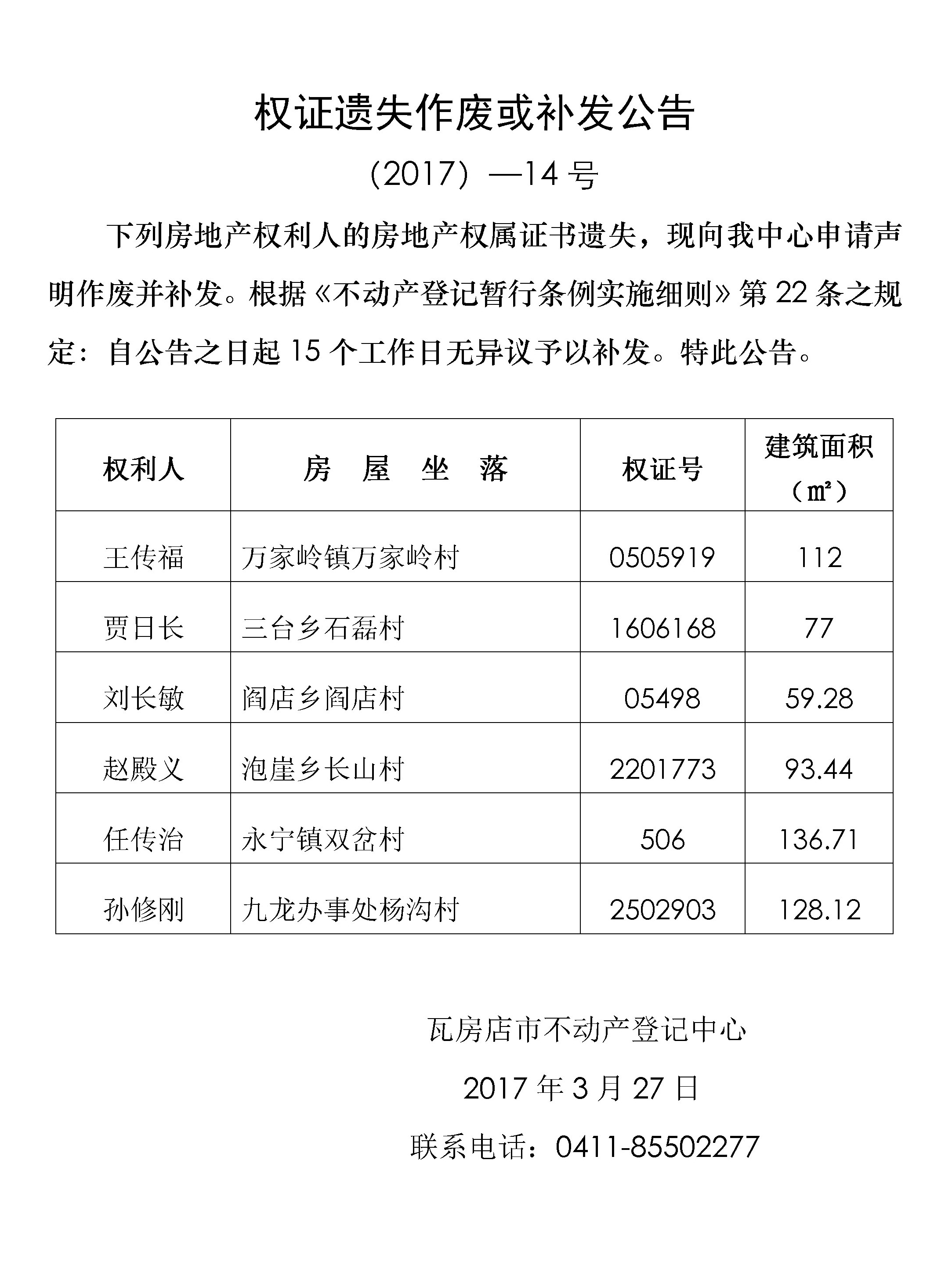 你好,欢迎光临瓦房店市不动产登记中心网站