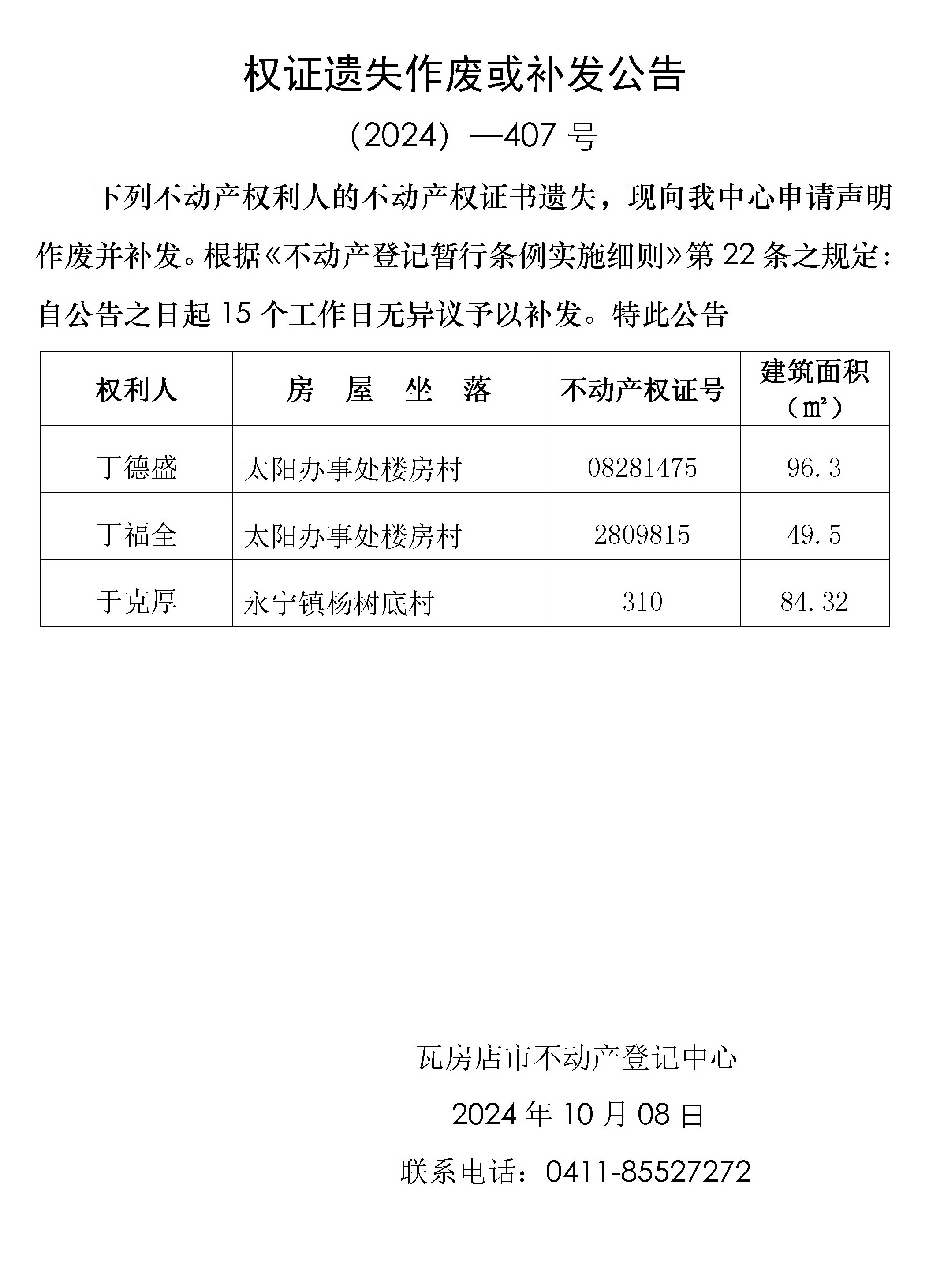 宅基地使用权及房屋所有权首次登记公告 (2024)-408号