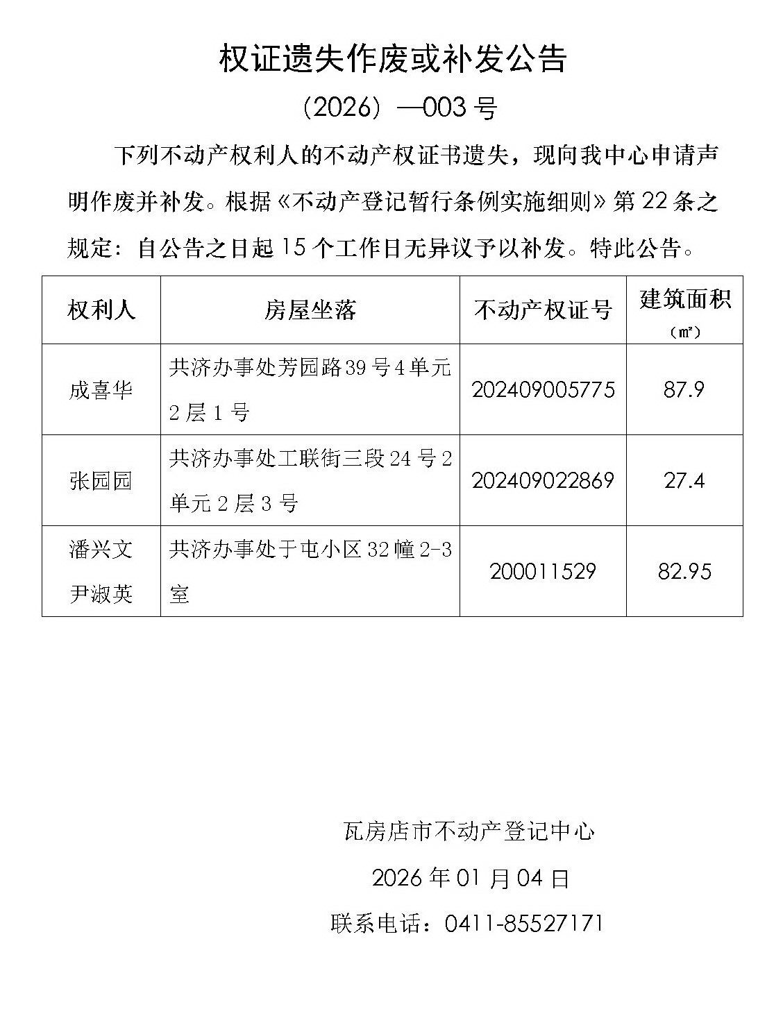 继承不动产登记公告 (2026)-002号