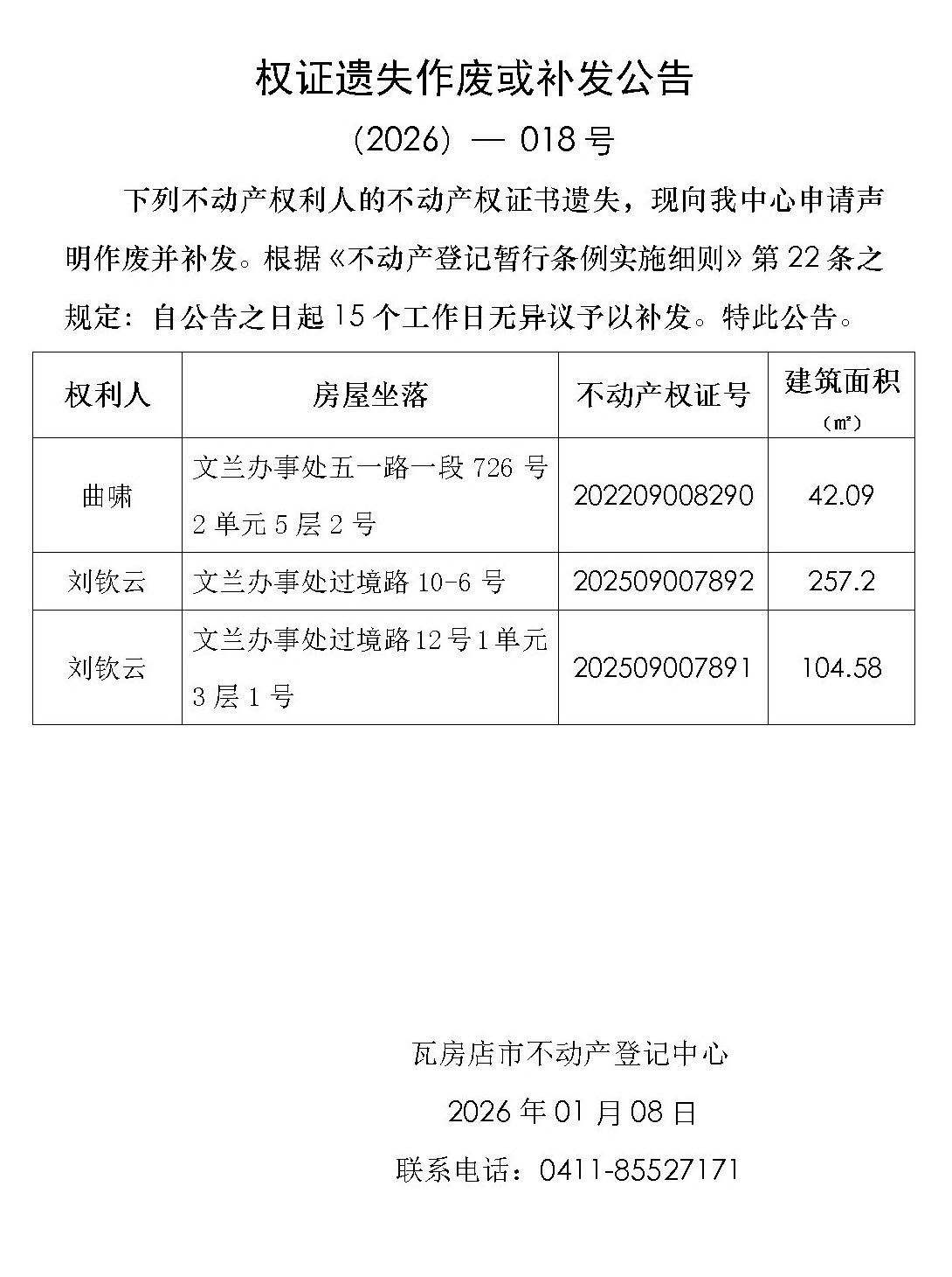 注销不动产权利证书公告