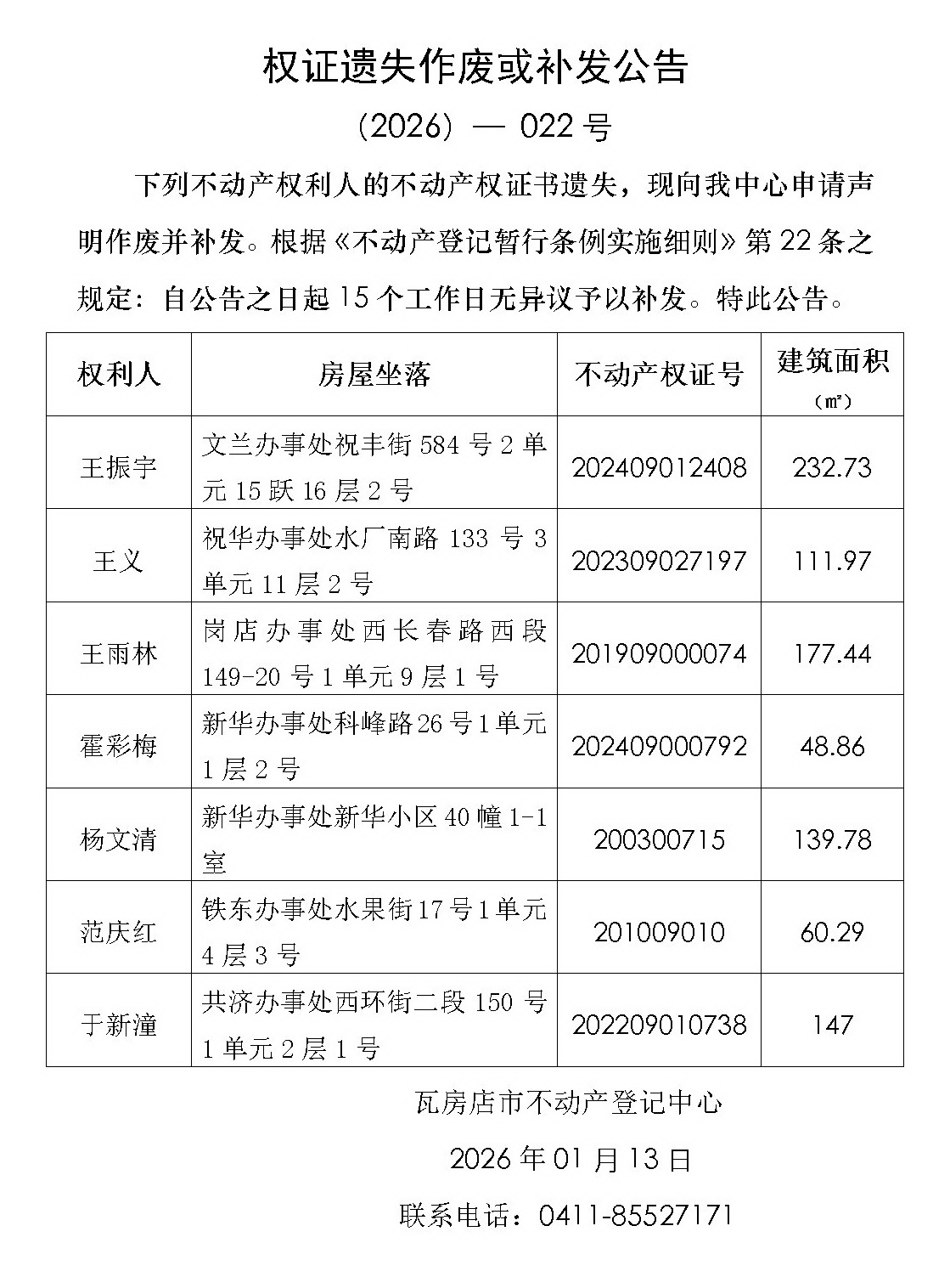注销不动产权利证书公告