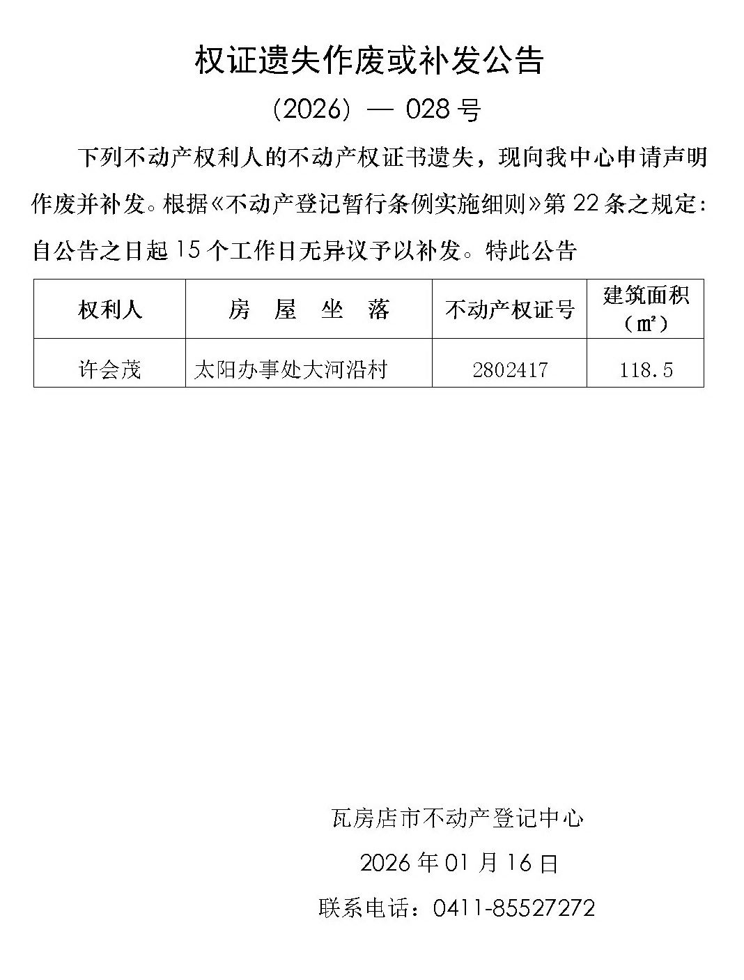 宅基地使用权及房屋所有权首次登记公告 (2026)-029号