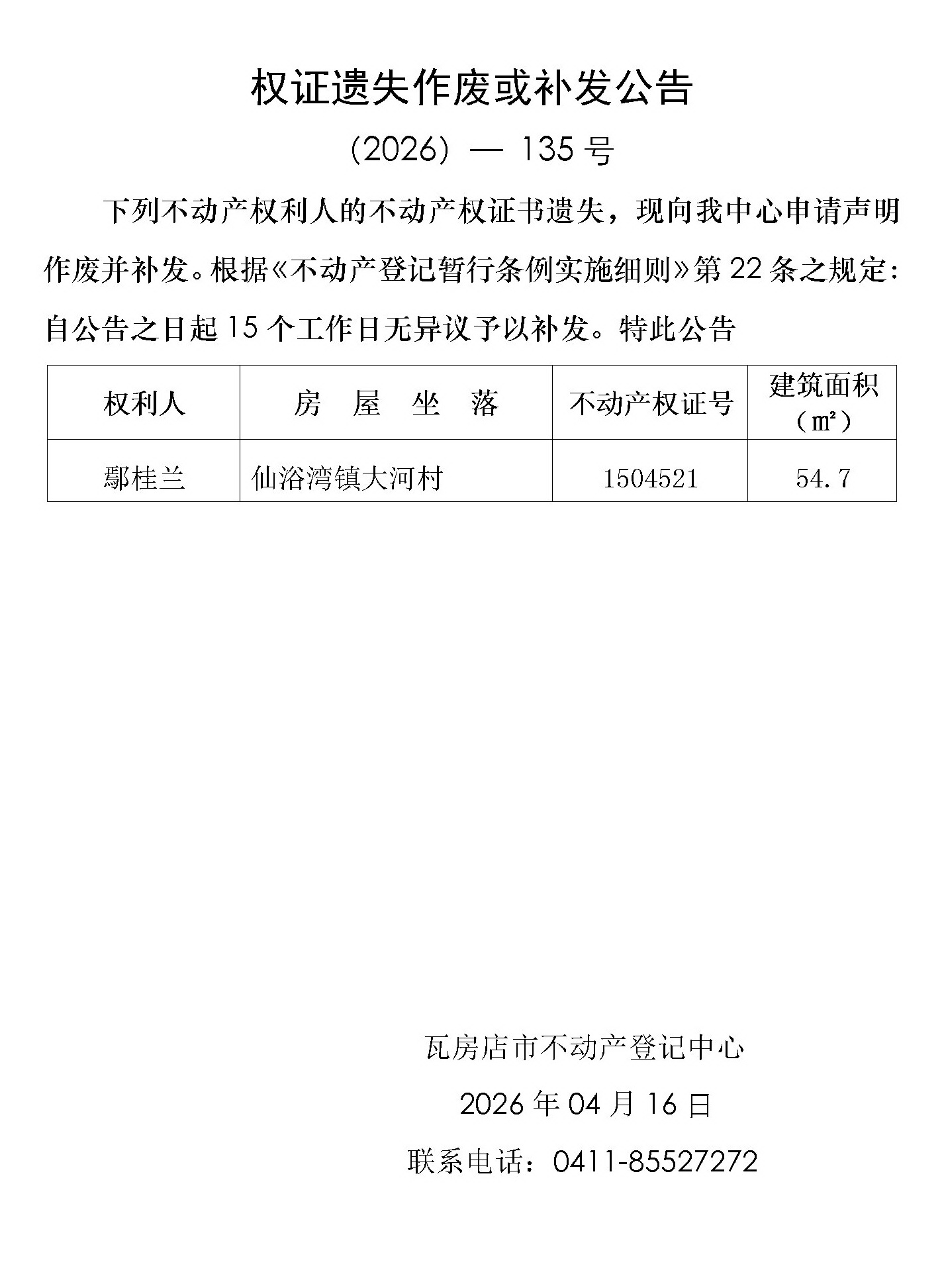 你好,欢迎光临瓦房店市不动产登记中心网站