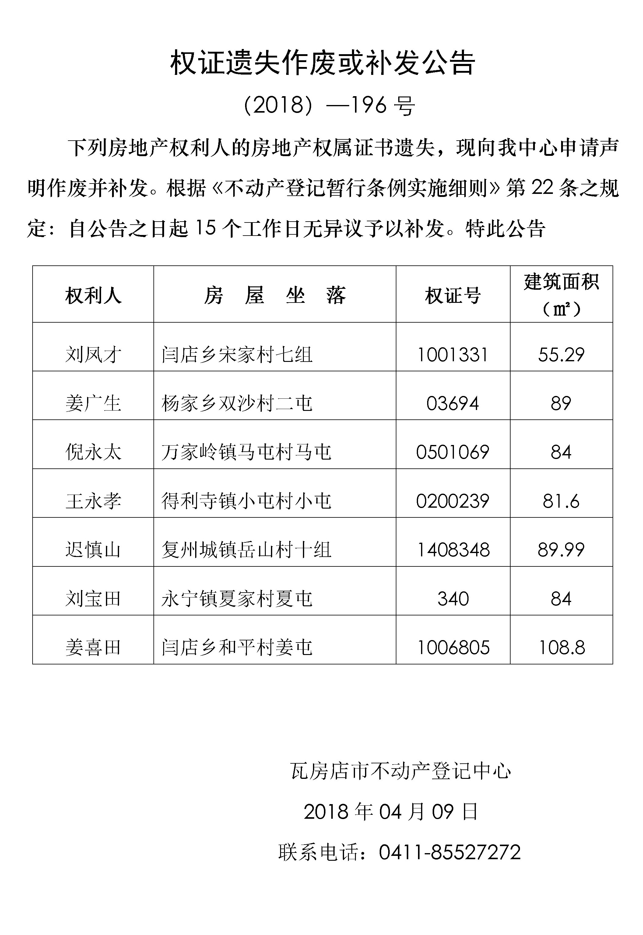 不动产转移登记公告 (2018)-195号