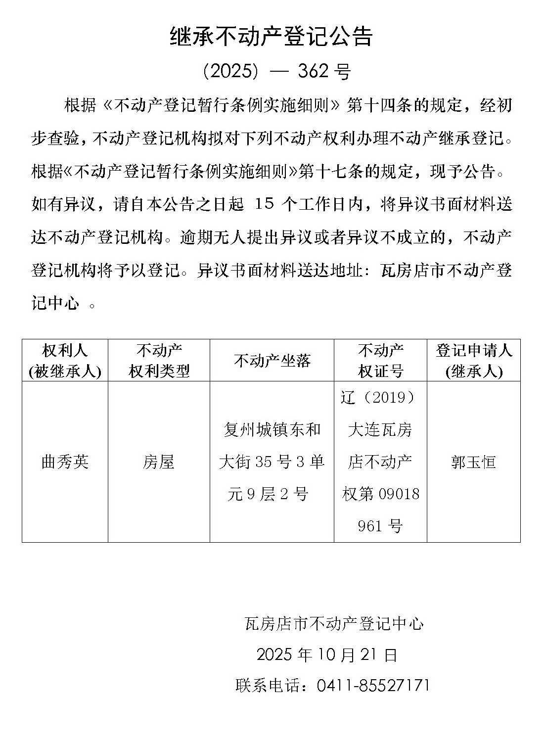 你好,欢迎光临瓦房店市不动产登记中心网站