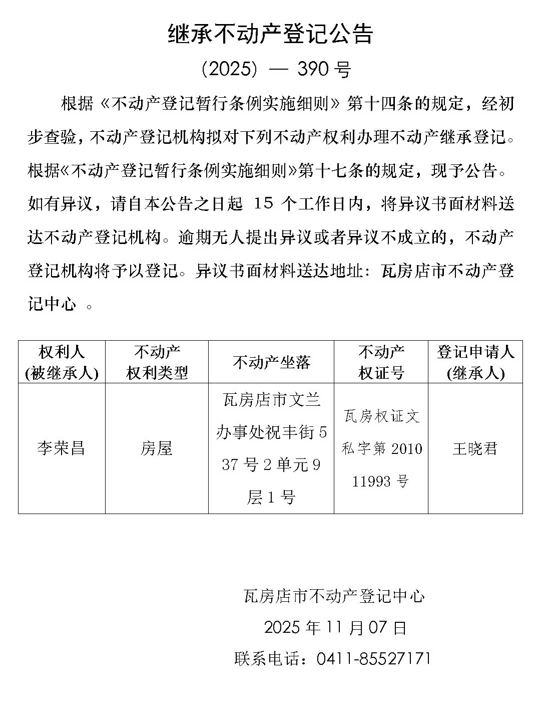 你好,欢迎光临瓦房店市不动产登记中心网站