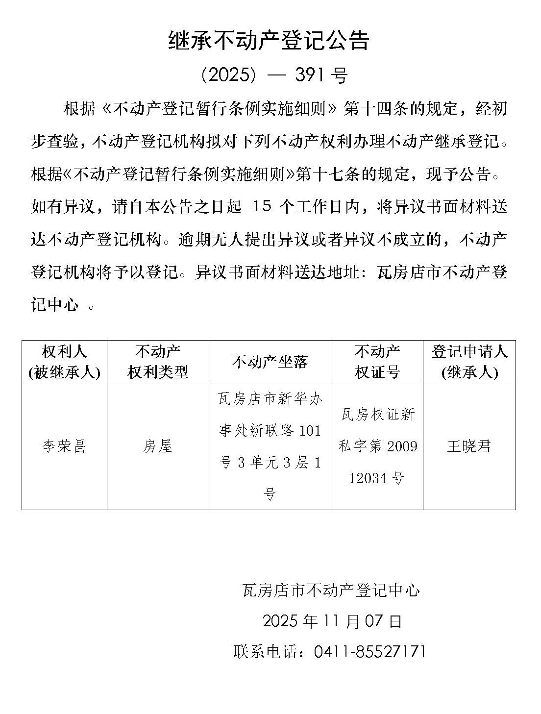 你好,欢迎光临瓦房店市不动产登记中心网站