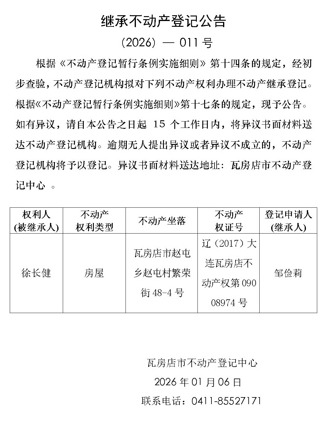 你好,欢迎光临瓦房店市不动产登记中心网站