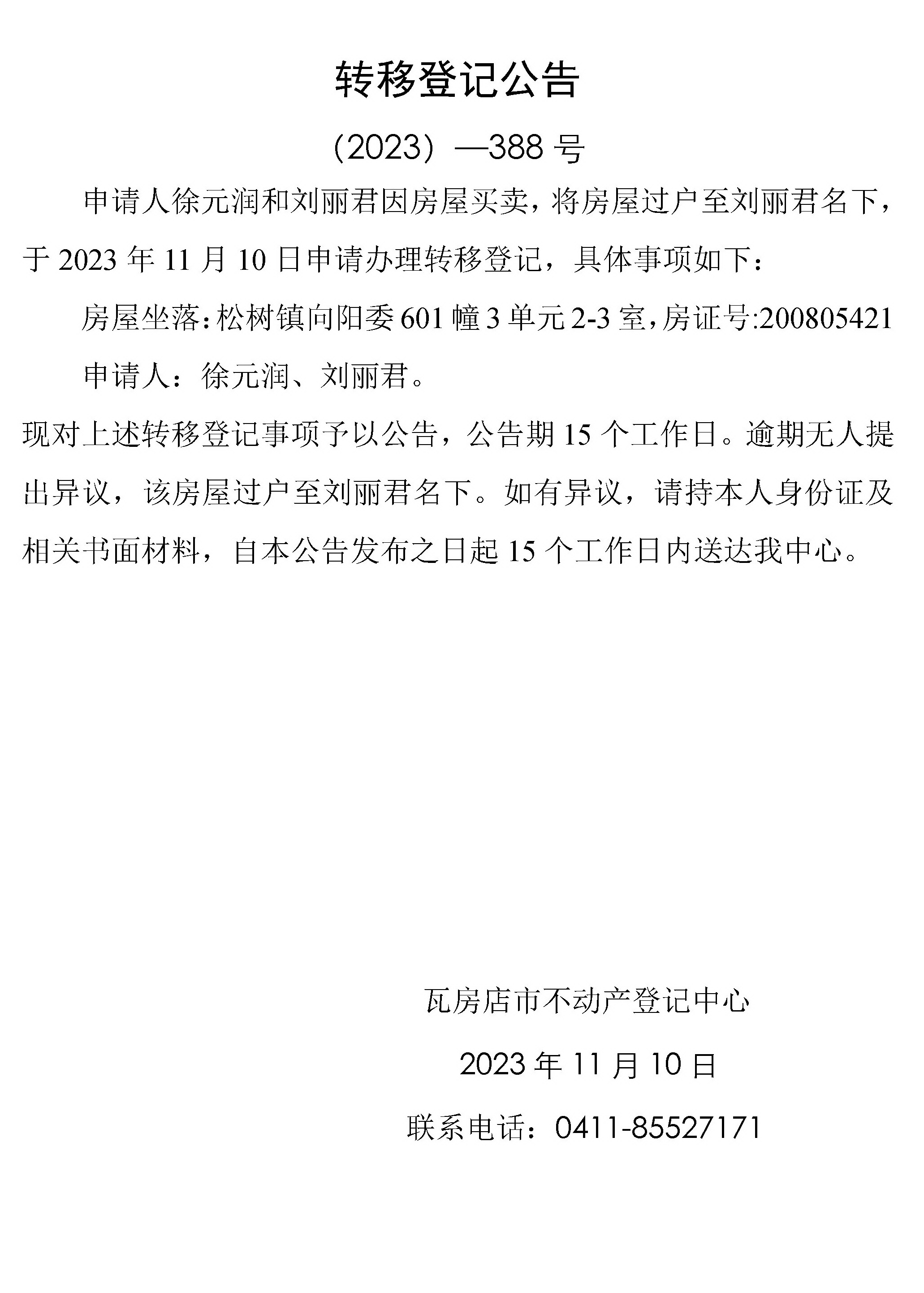 你好,欢迎光临瓦房店市不动产登记中心网站