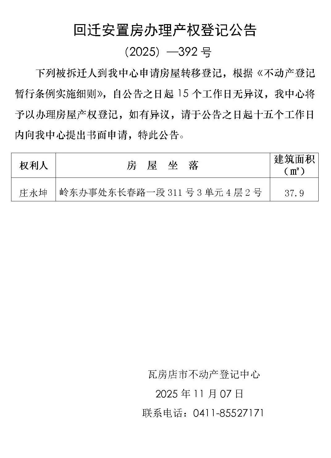 你好,欢迎光临瓦房店市不动产登记中心网站